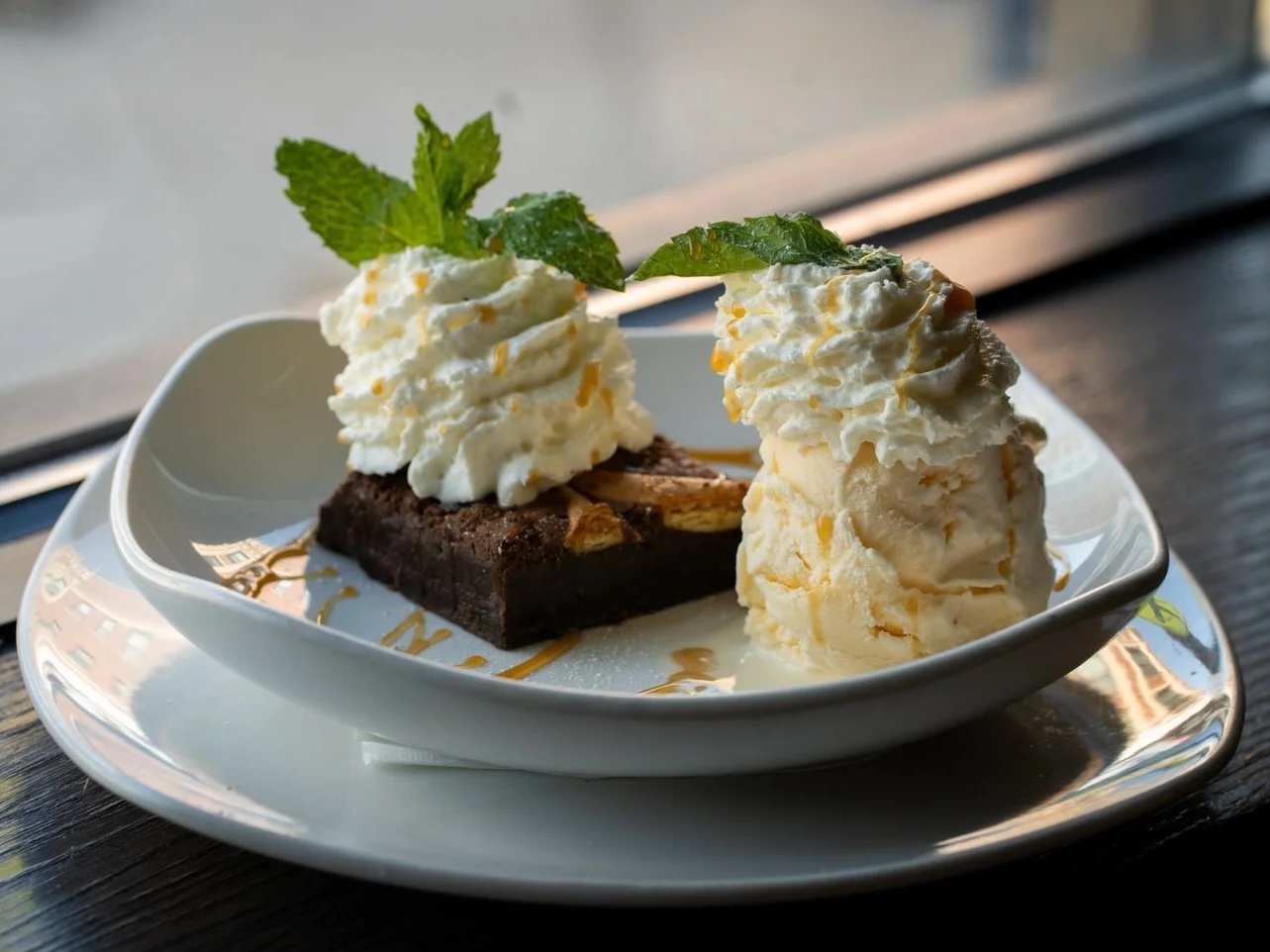 White Chocolate & Macadamia Nut, Pecans, Whipped Cream, Vanilla Ice Cream